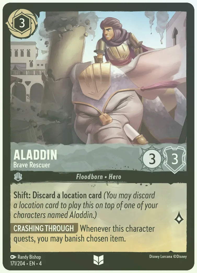 Shift: Discard a location card (You may discard a location card to play this on top of one of your characters named Aladdin.)