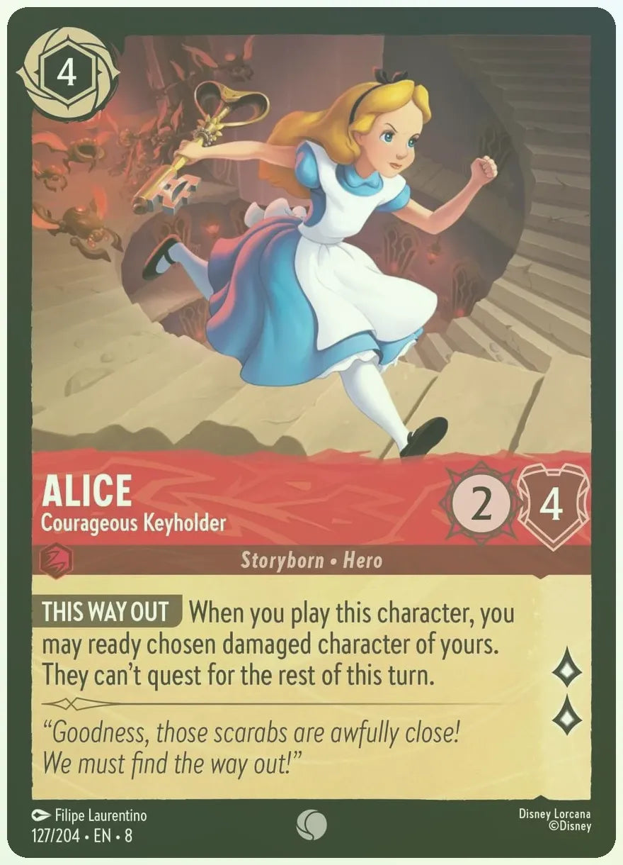 When you play this character, you may ready chosen damaged character of yours. They can’t quest for the rest of this turn.