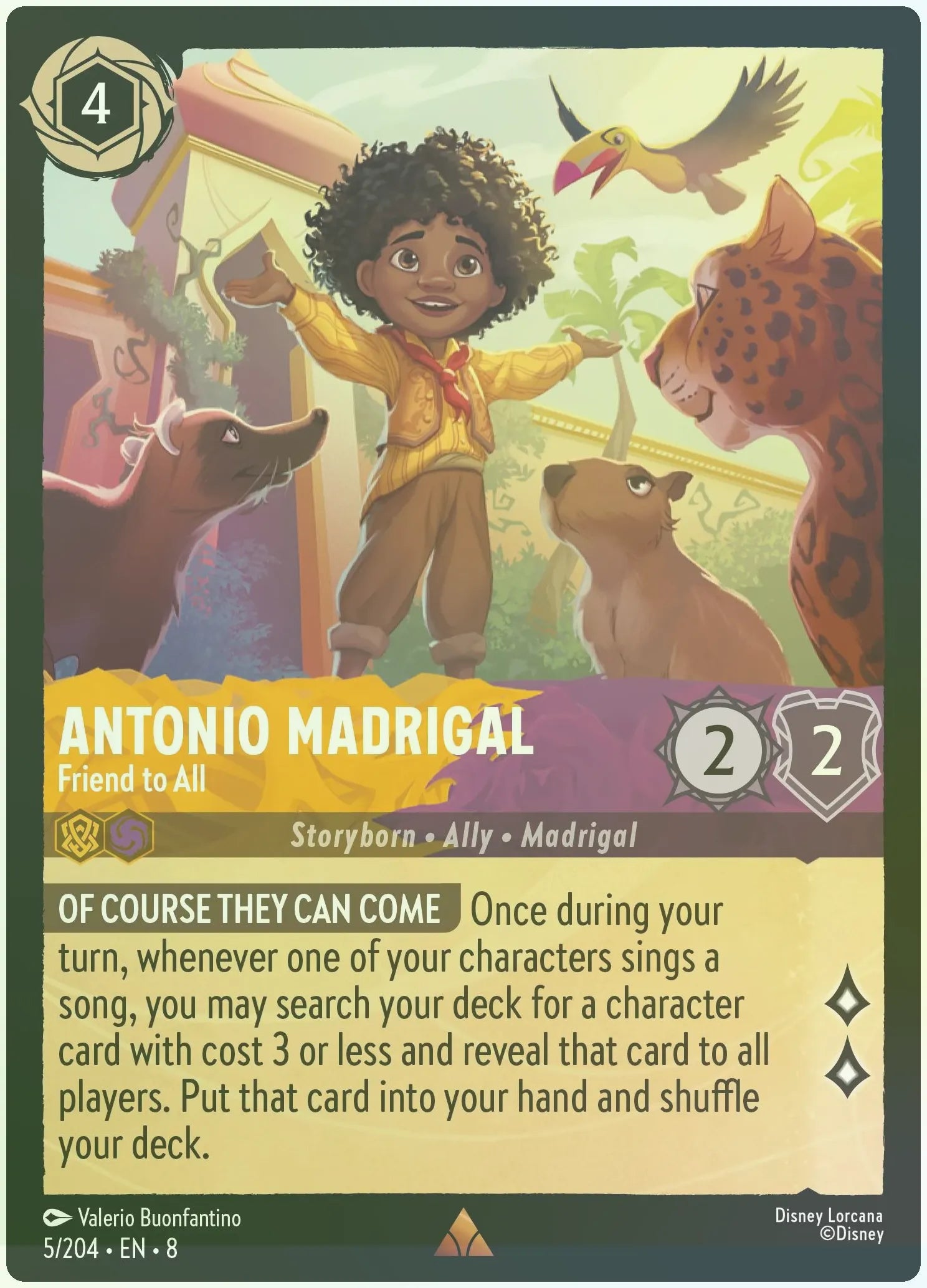 Once during your turn, whenever one of your characters sings a song, you may search your deck for a character card with cost 3 or less and reveal that card to all players. Put that card into your hand and shuffle your deck.