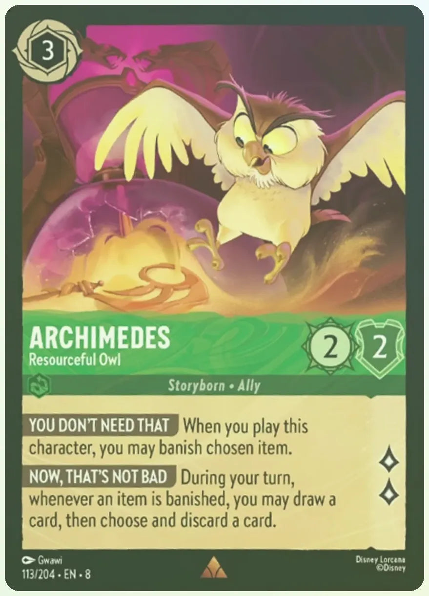 During your turn, whenever an item is banished, you may draw a card, then choose and discard a card.