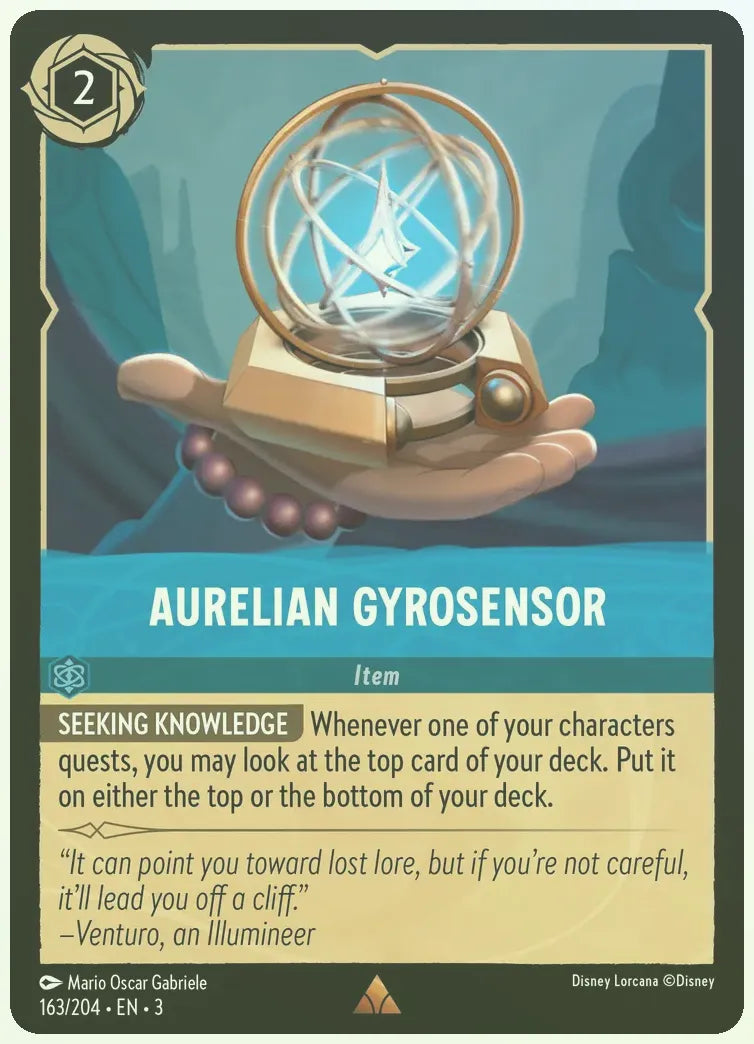 Whenever one of your characters quests, you may look at the top card of your deck. Put it on either the top or the bottom of your deck.