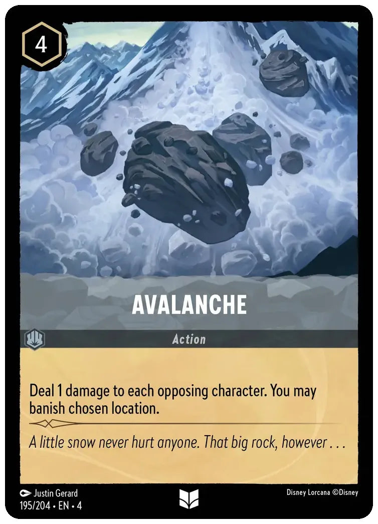 Deal 1 damage to each opposing character. You may banish chosen location.