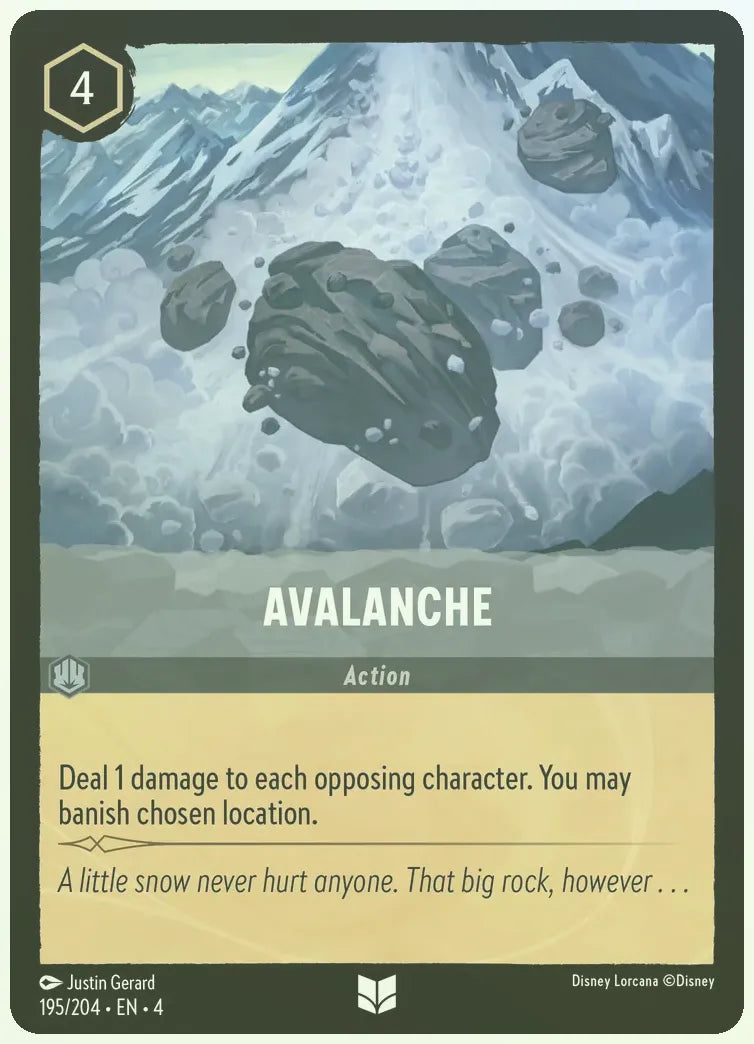 Deal 1 damage to each opposing character. You may banish chosen location.
