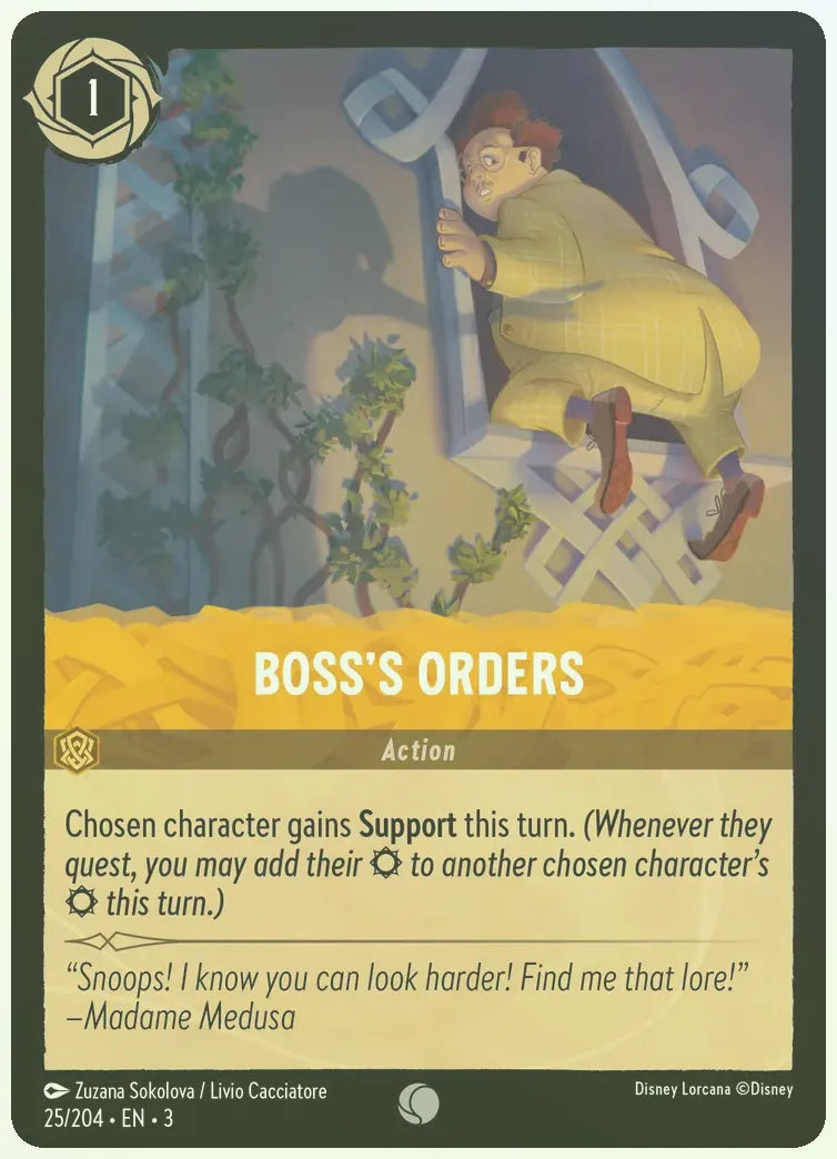 Chosen character gains Support this turn. (Whenever they quest, you may add their strength to another chosen character's strength this turn.)