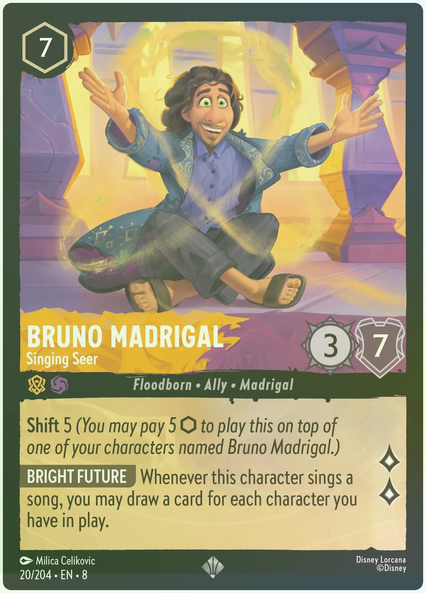 Shift 5 (You may pay 5 to play this on top of one of your characters named Bruno Madrigal.)