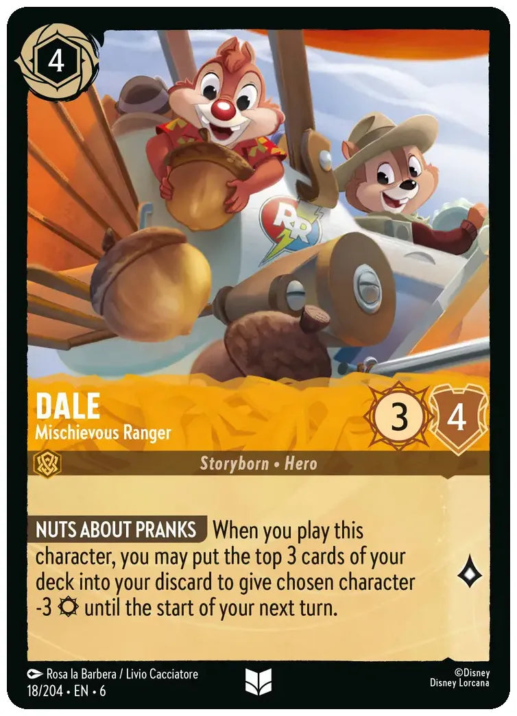 When you play this character, you may put the top 3 cards of your deck into your discard to give chosen character -3 ? until the start of your next turn.