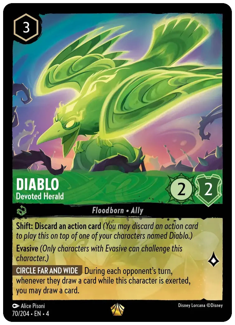 Shift: Discard an action card (You may discard an action card to play this on top of one of your characters named Diablo.)