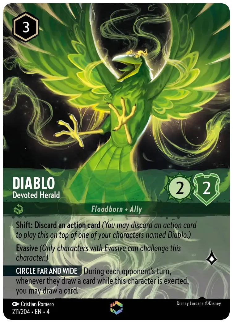 Shift: Discard an action card (You may discard an action card to play this on top of one of your characters named Diablo.)
