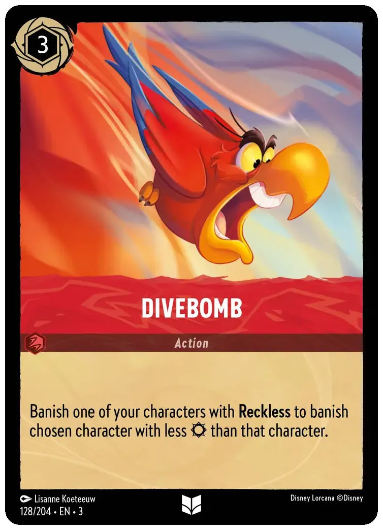 Banish one of your characters with Reckless to banish chosen character with less strength than that character.