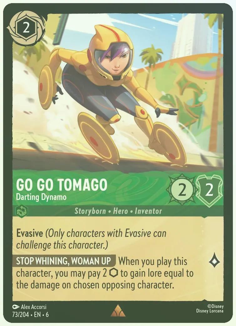 When you play this character, you may pay 2 ? to gain lore equal to the damage on chosen opposing character.