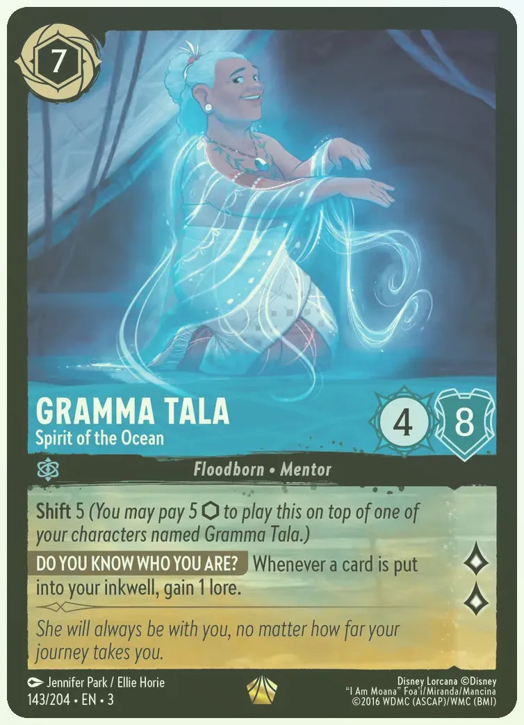 Shift 5 (You may pay 5 ink to play this on top of one of your characters named Gramma Tala.)