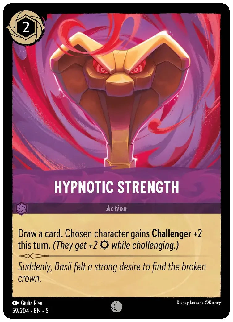 Draw a card. Chosen character gains Challenger +2 this turn. (They get +2 strength while challenging.)