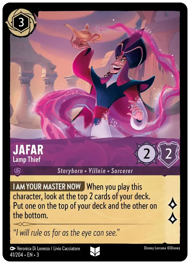 When you play this character, look at the top 2 cards of your deck. Put one on the top of your deck and the other on the bottom.