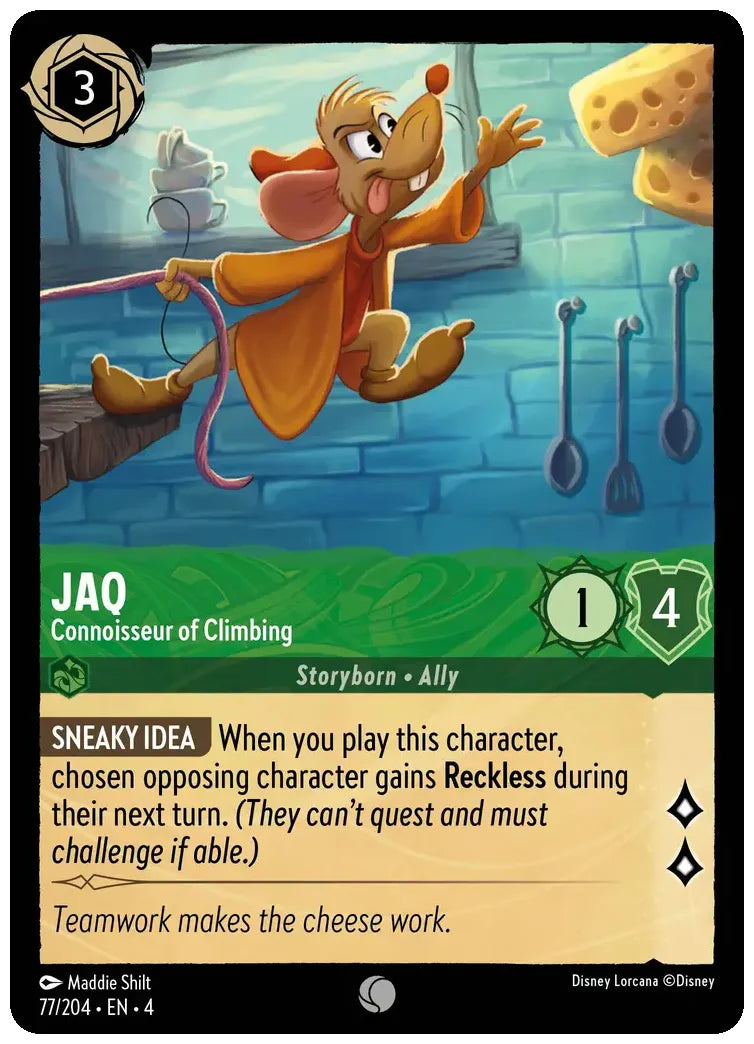 When you play this character, chosen opposing character gains Reckless during their next turn. (They can't quest and must challenge if able.)