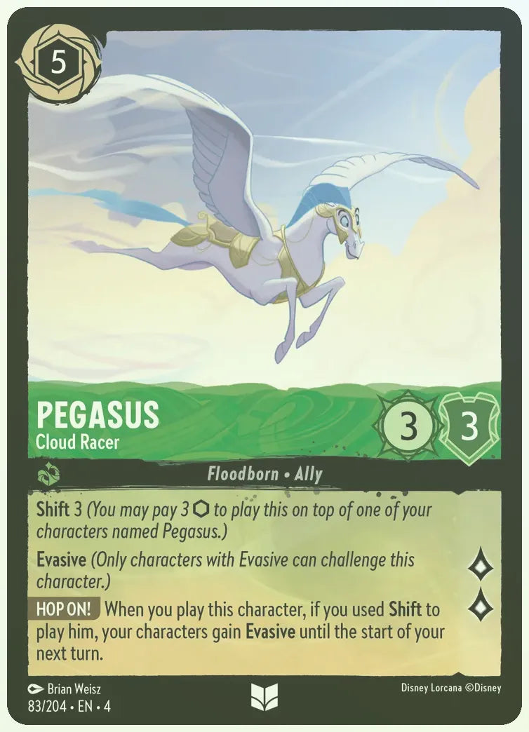 Shift 3 You may pay 3 ink to play this on top of one of your characters named Pegasus.)