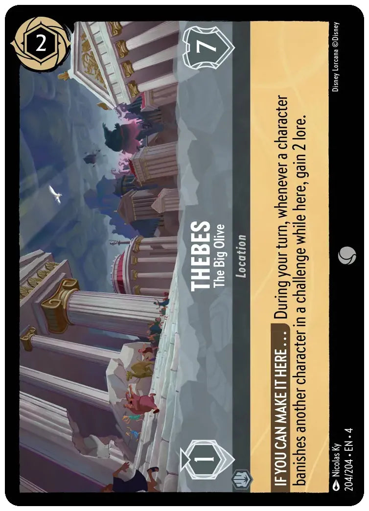 During your turn, whenever a character banishes another character in a challenge while here, you gain 2 lore.