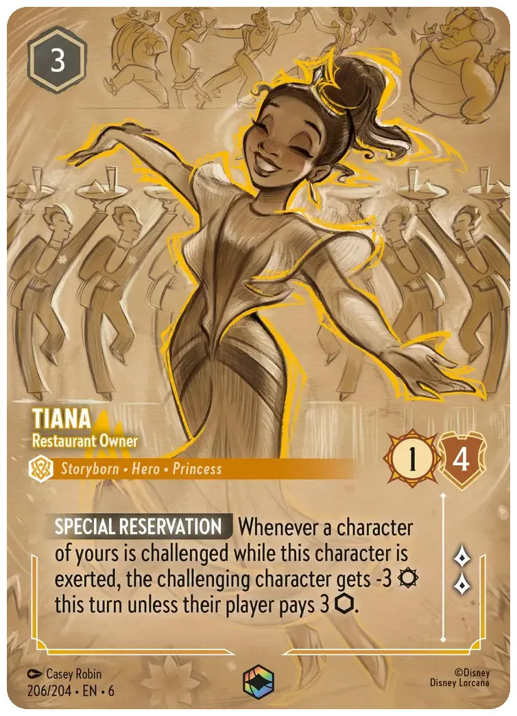 Whenever a character of yours is challenged while this character is exerted, the challenging character gets -3 this turn unless their player pays 3