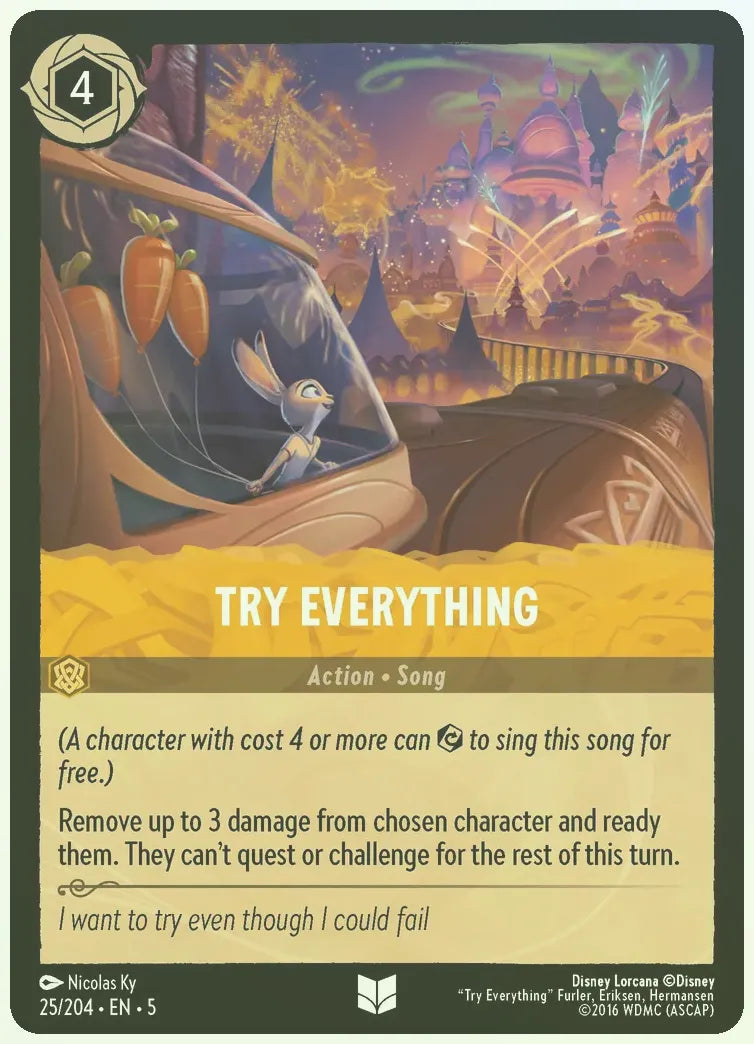 Remove up to 3 damage from chosen character and ready them. They can't quest or challenge for the rest of this turn.
