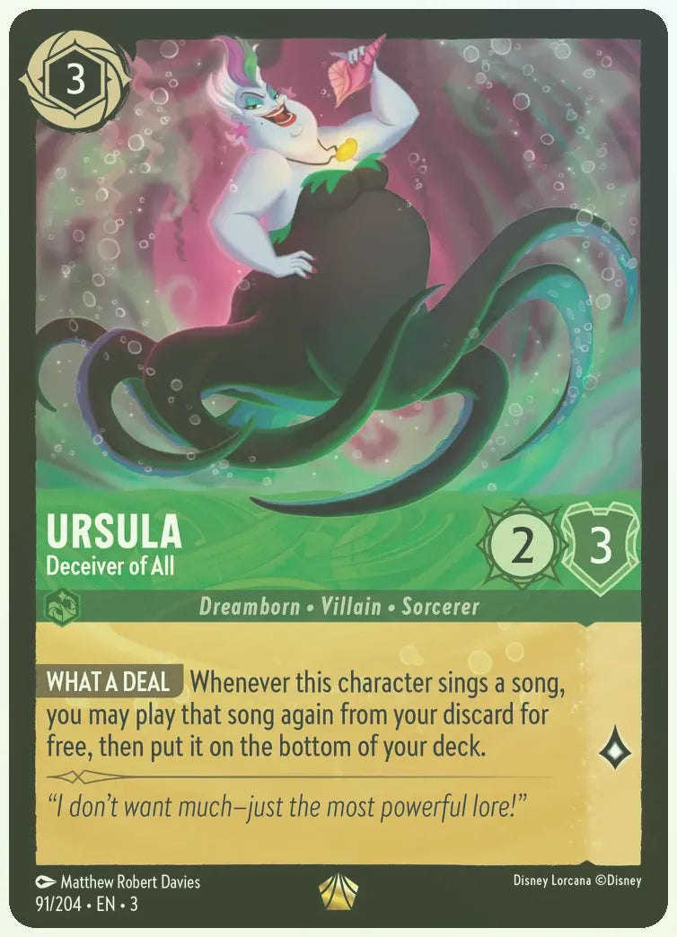 Whenever this character sings a song, you may play that song again from your discard for free, then put it on the bottom of your deck.