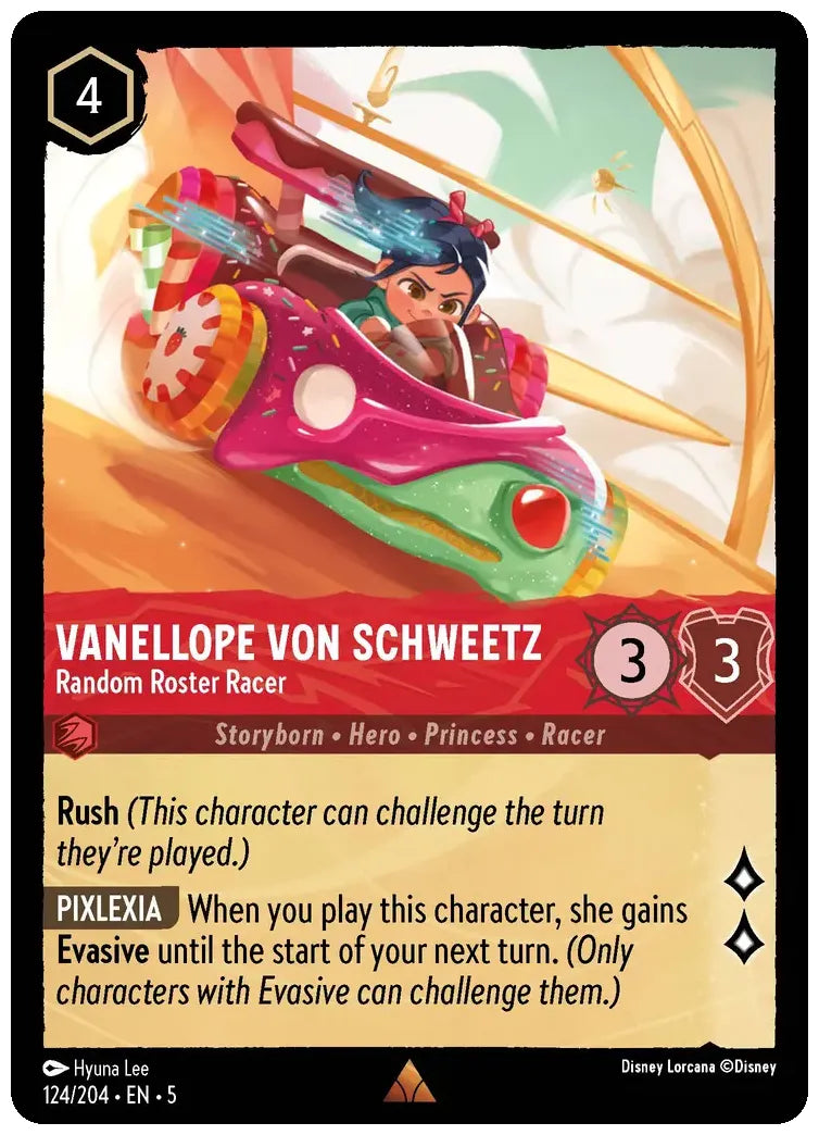 When you play this character, she gains Evasive until the start of your next turn. (Only characters with Evasive can challenge them.)