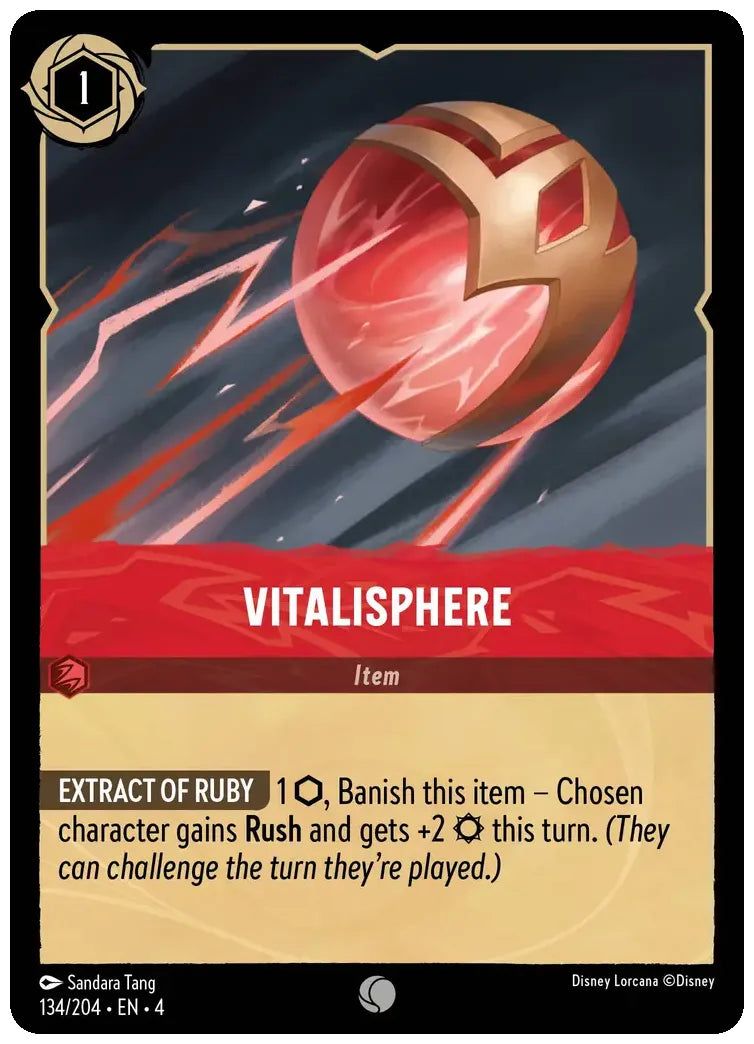 1 ink, Banish this item - Chosen character gains Rush and gets +2 strength this turn. (They can challenge the turn they're played.)