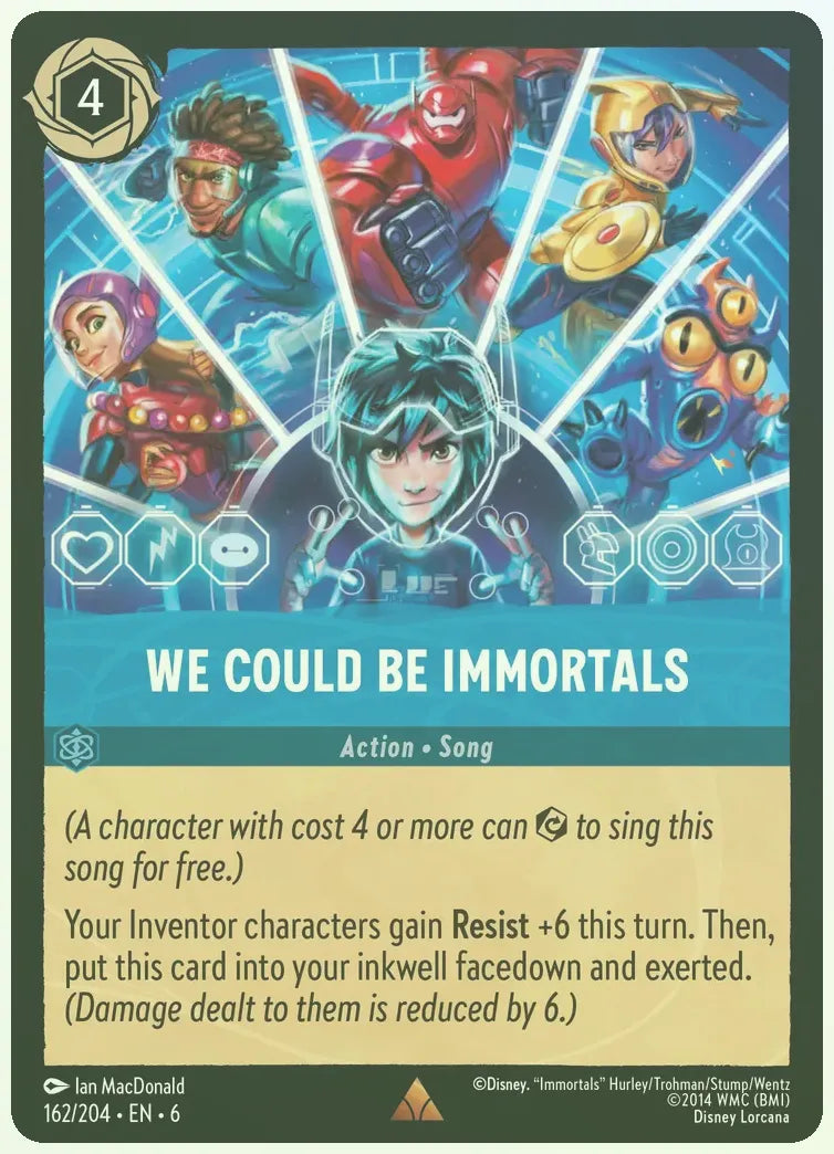 Your Inventor characters gain Resist +6 this turn. Then, put this card into your inkwell facedown and exerted. (Damage dealt to them is reduced by 6.)