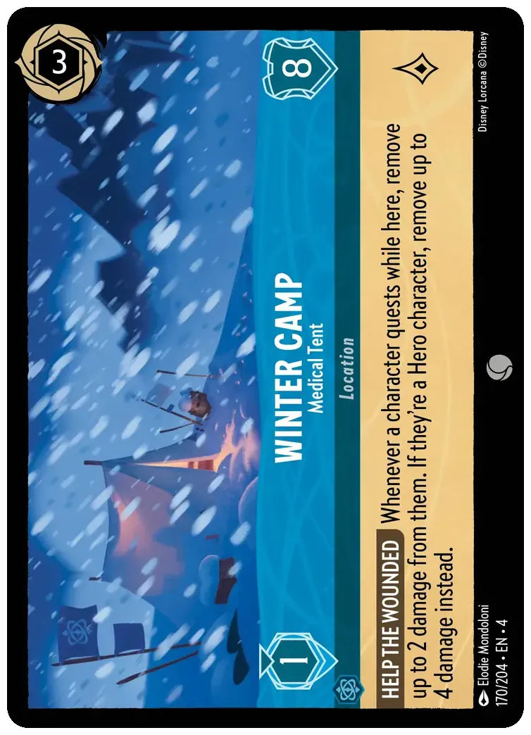 Whenever a character quests while here, remove up to 2 damage from them. If they're a Hero character, remove up to 4 damage instead.