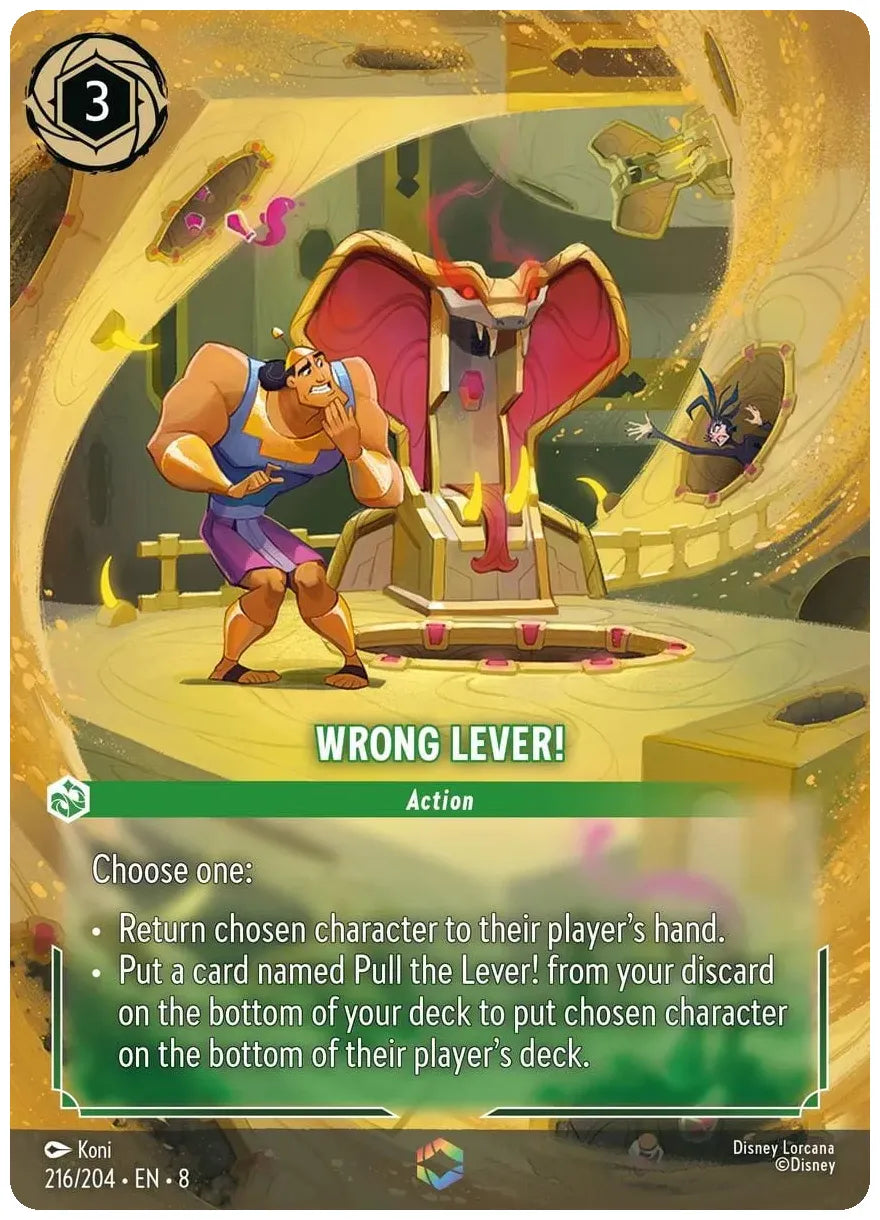 • Put a card named Pull the Lever! from your discard on the bottom of your deck to put chosen character on the bottom of their player’s deck.